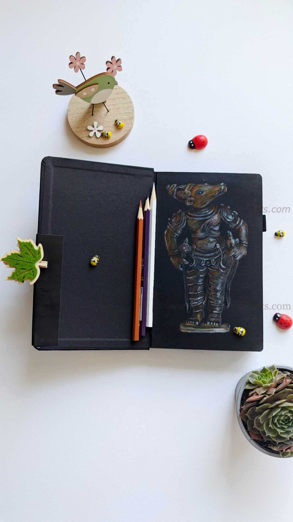 Drawing on A4 black paper, done using alcohol markers and colour pencils.